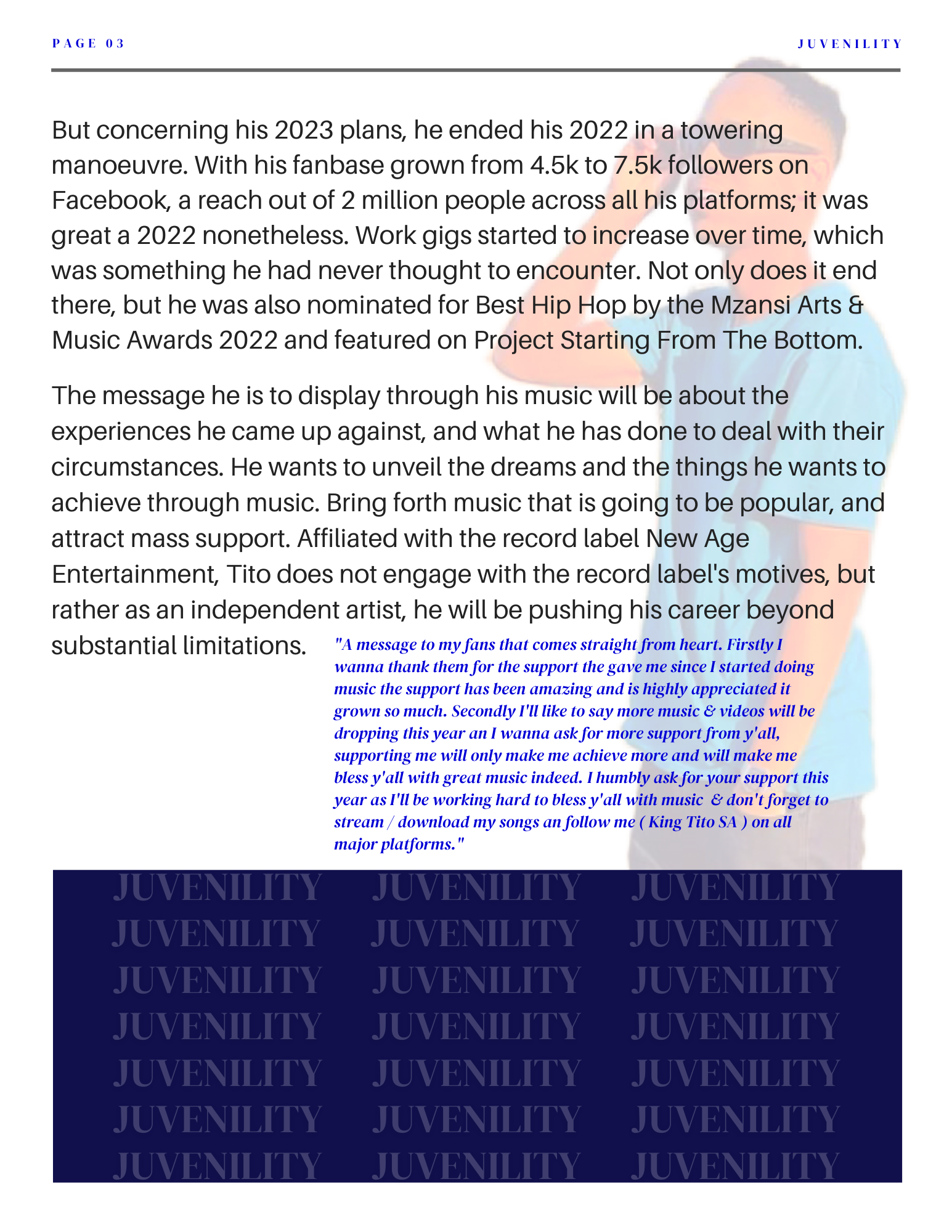 Juvenility January 2023’s issue features King Tito as the first main cover of Project Starting From The Bottom Co.’s magazine.